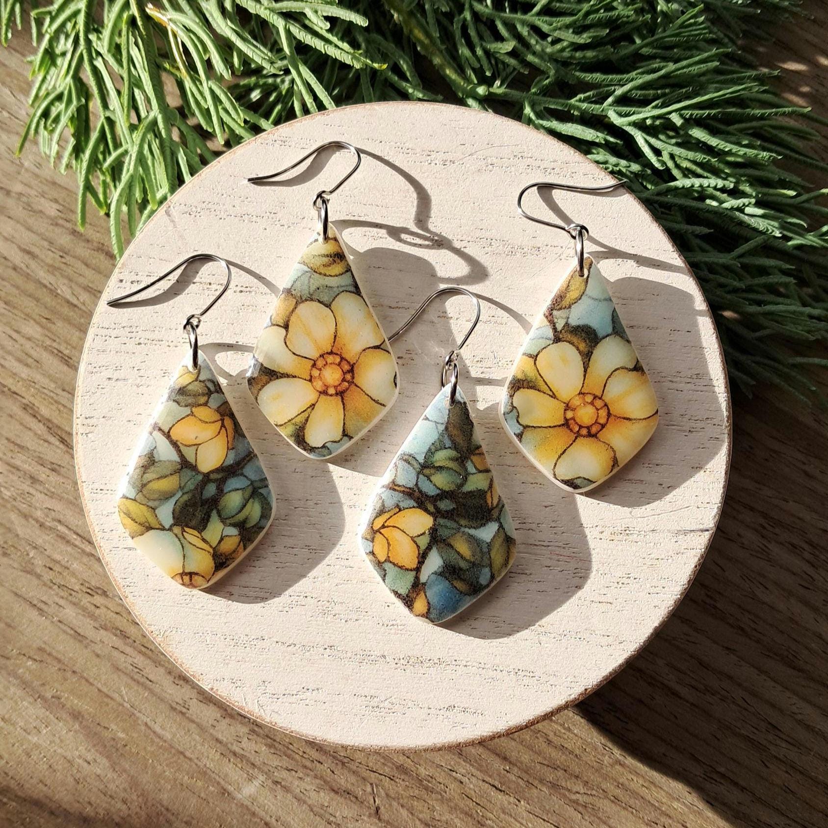 Blue Floral Stained Glass Earring : Teardrop