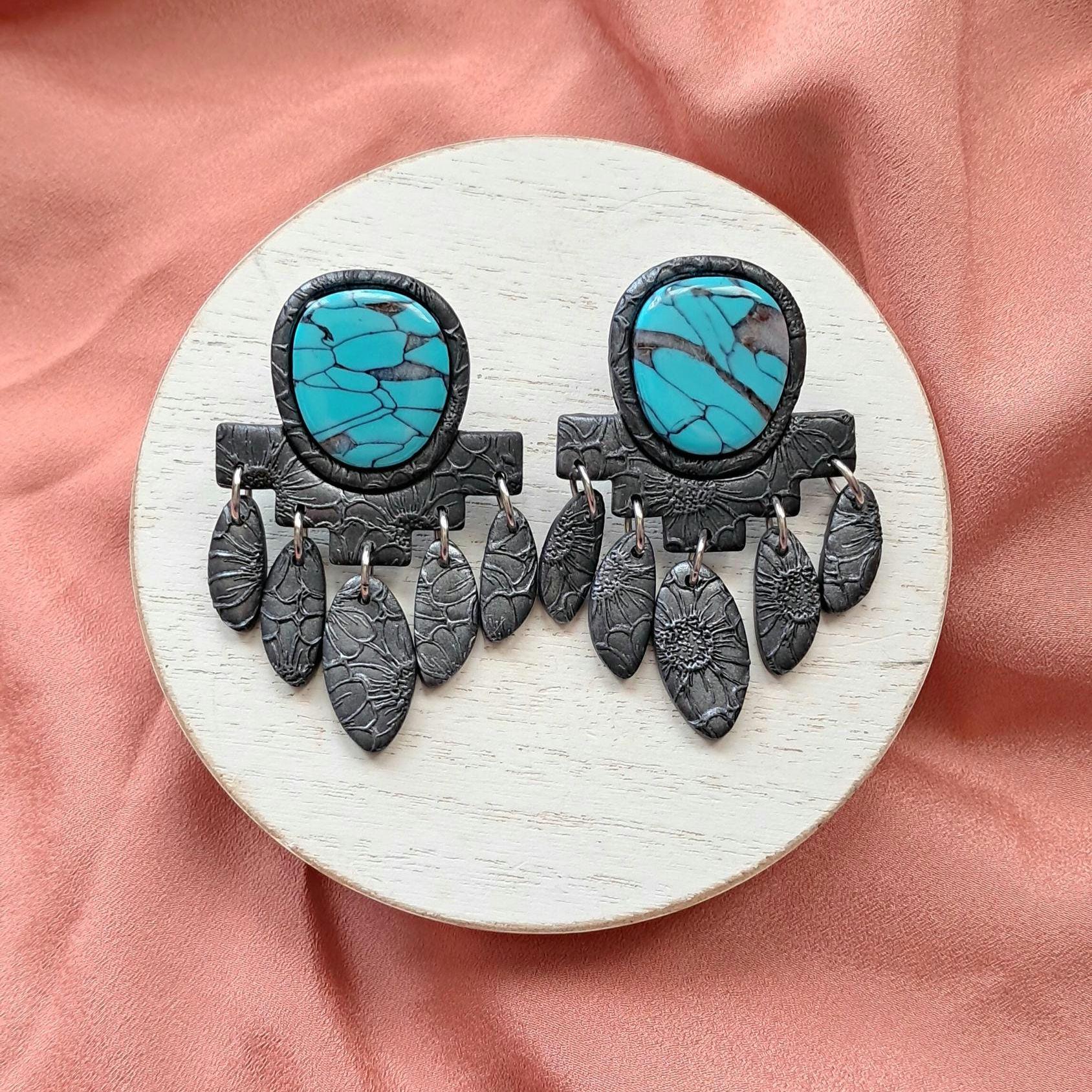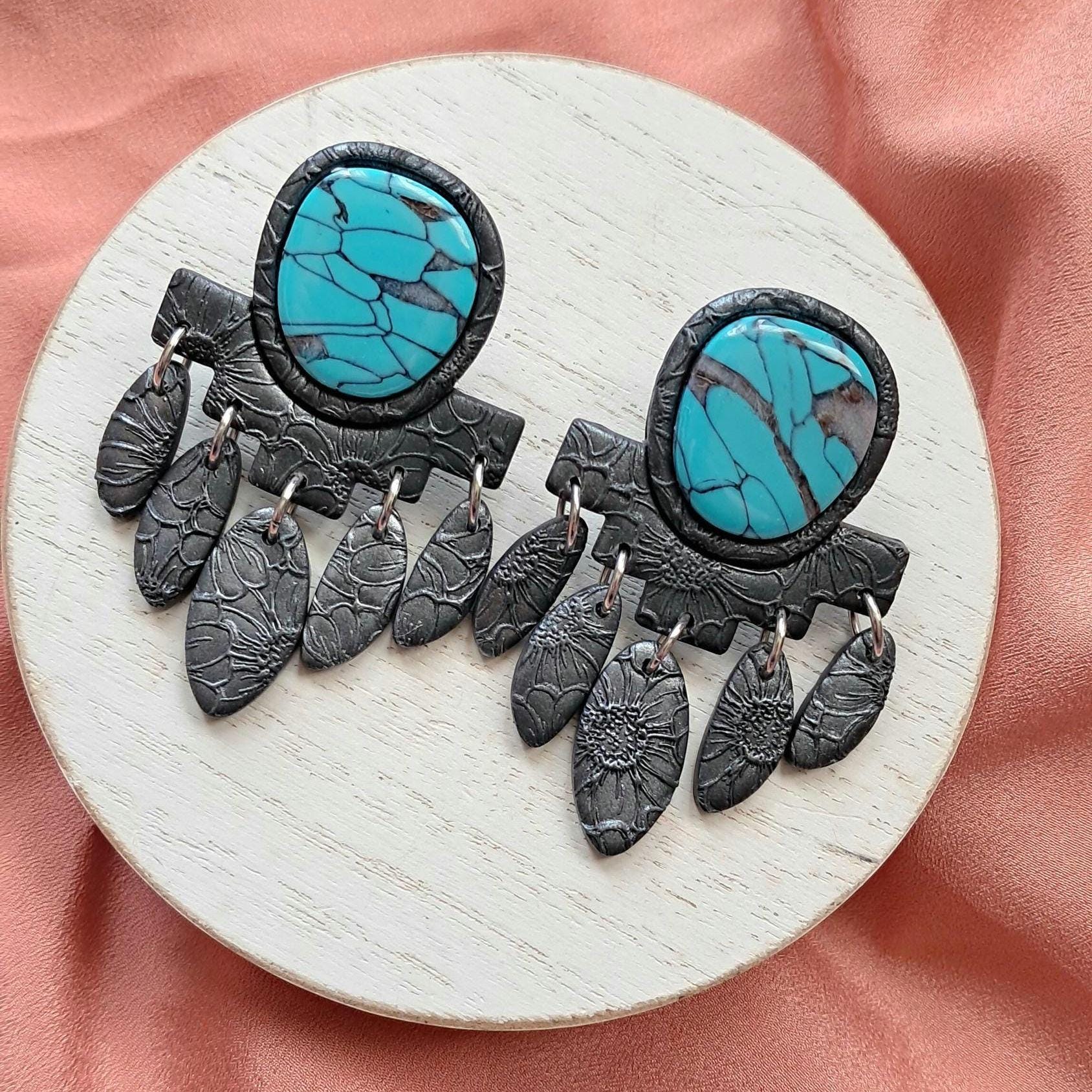 These are FAUX Turquoise Earrings made from polymer clay and resin. Not real stones. Polymer Clay is much lighter than real gemstones and metal.
