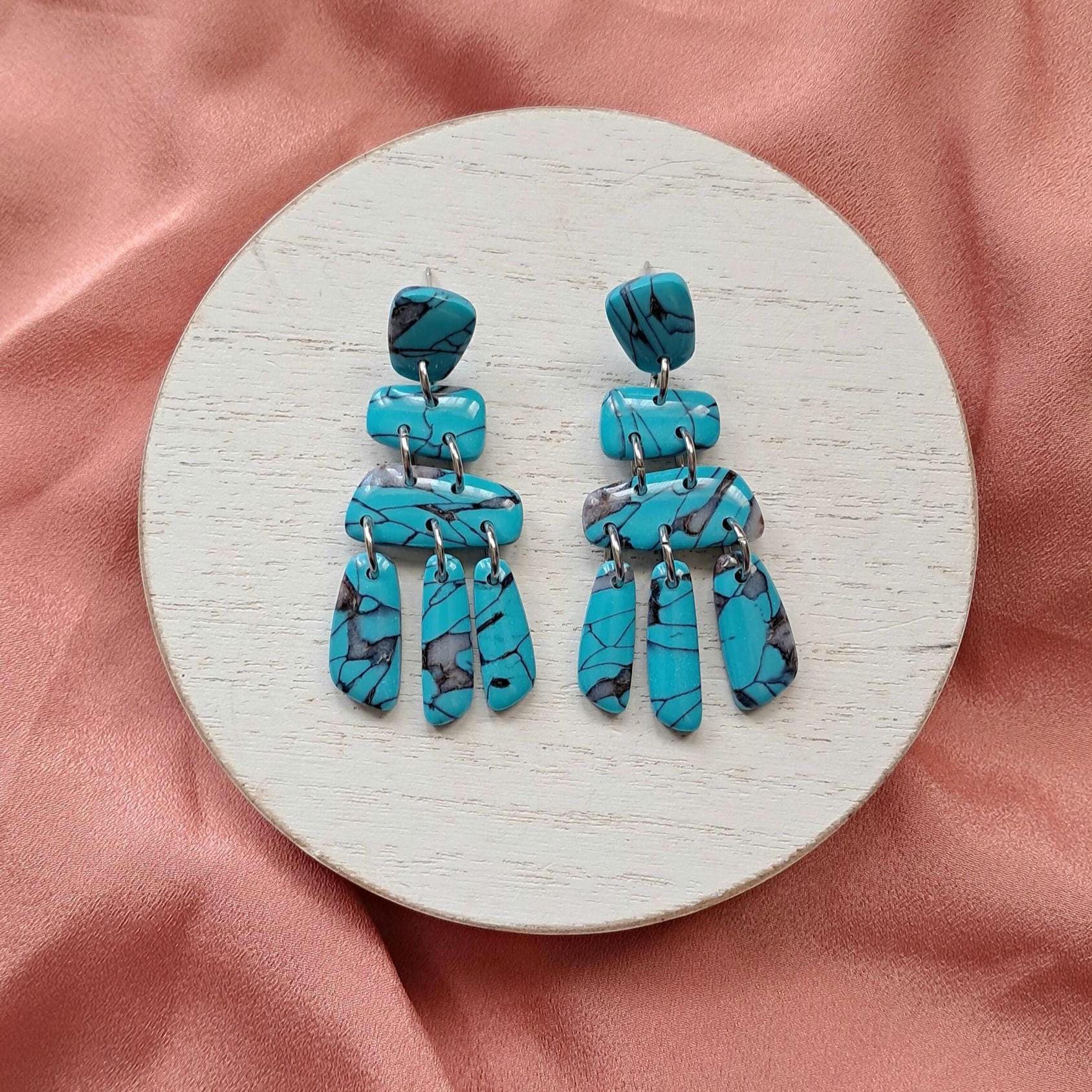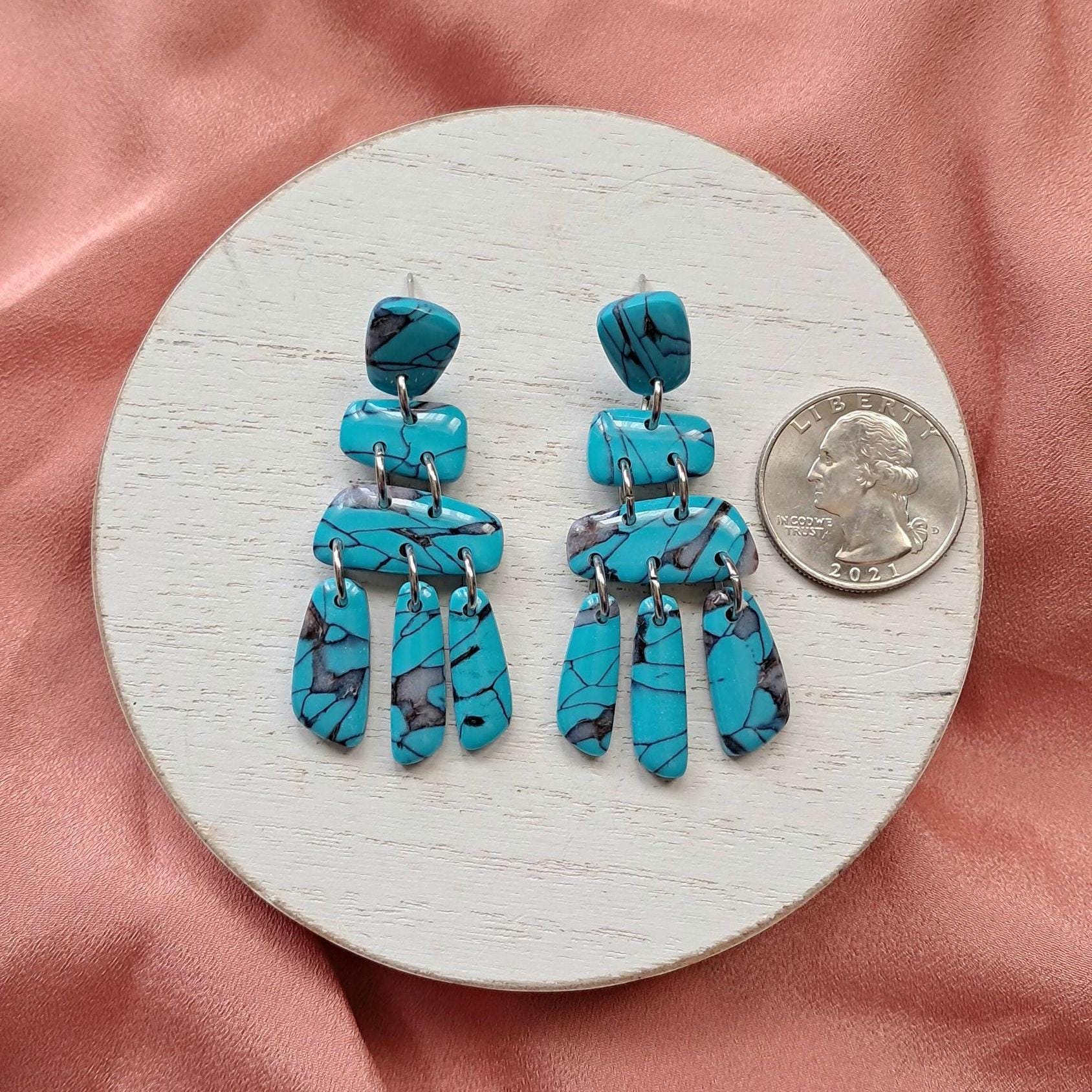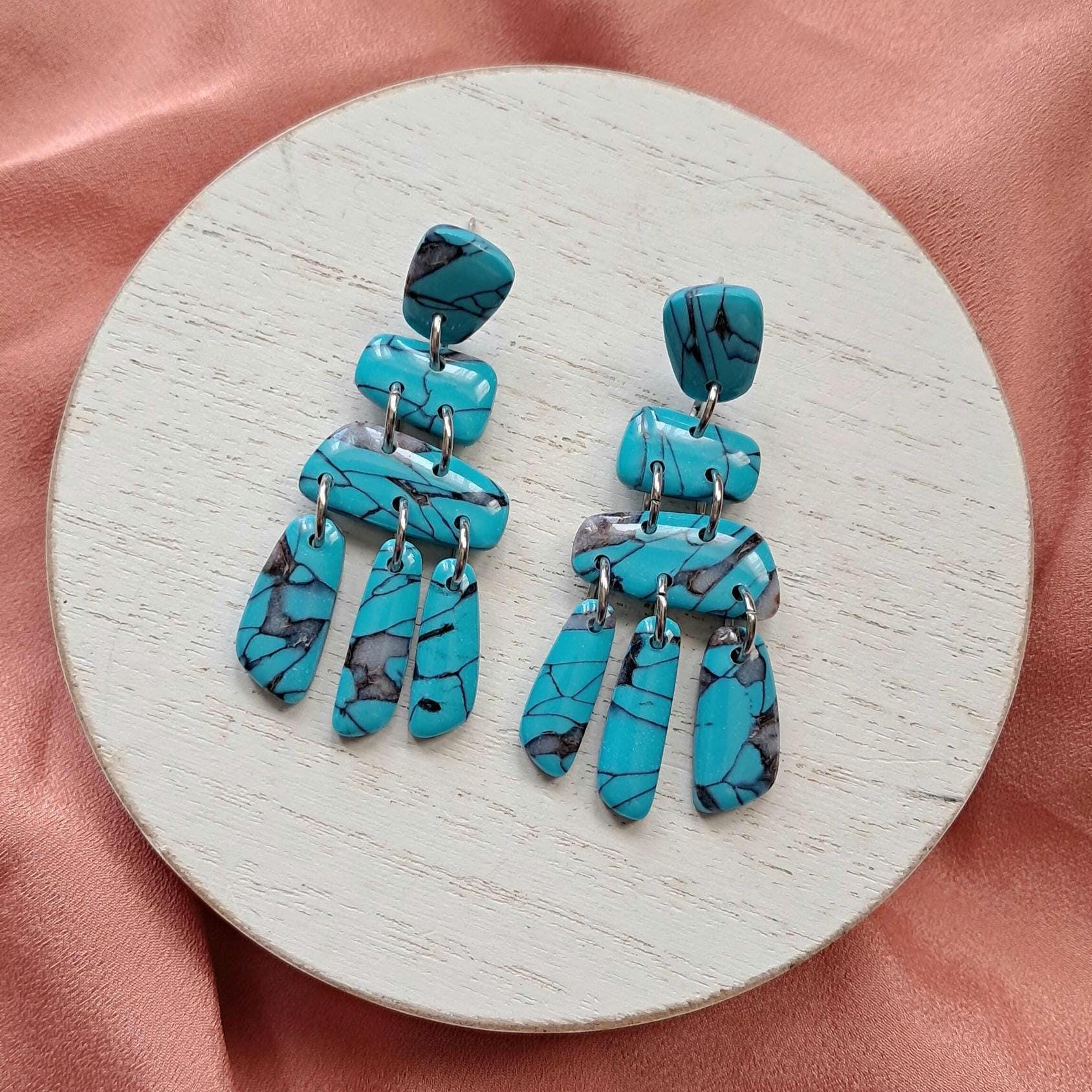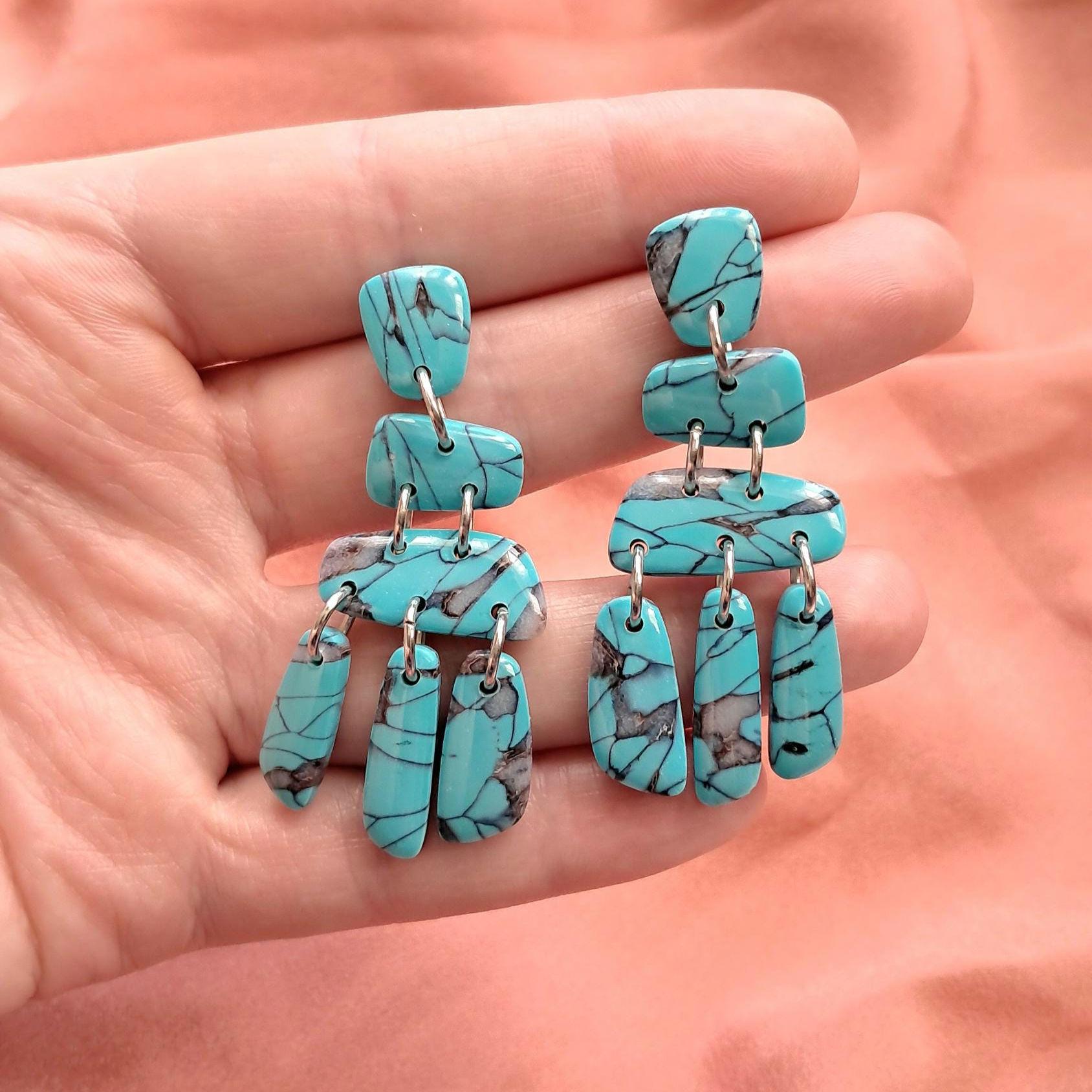 These are FAUX Turquoise Earrings made from polymer clay and resin. Not real stones. Polymer Clay is much lighter than real gemstones and metal.