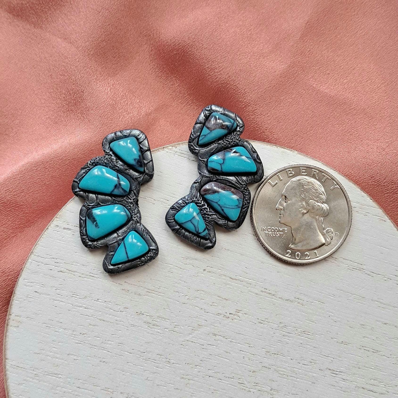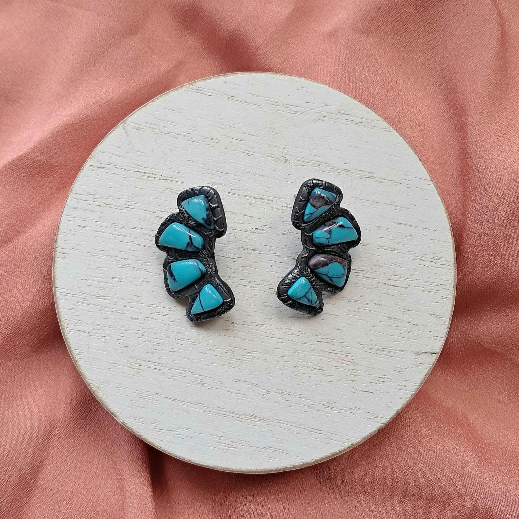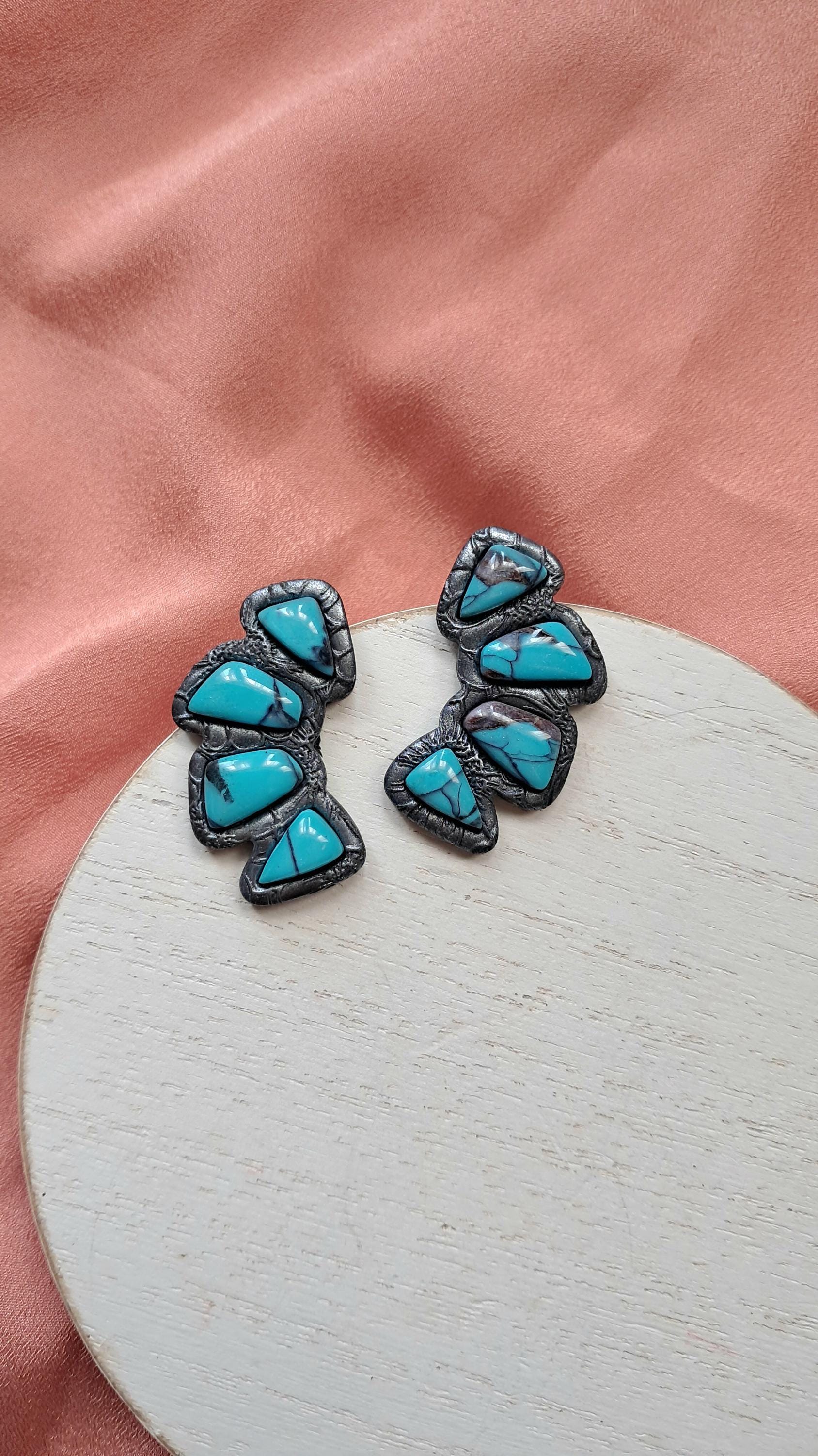 These are FAUX Turquoise Earrings made from polymer clay and resin. Not real stones. Polymer Clay is much lighter than real gemstones and metal.