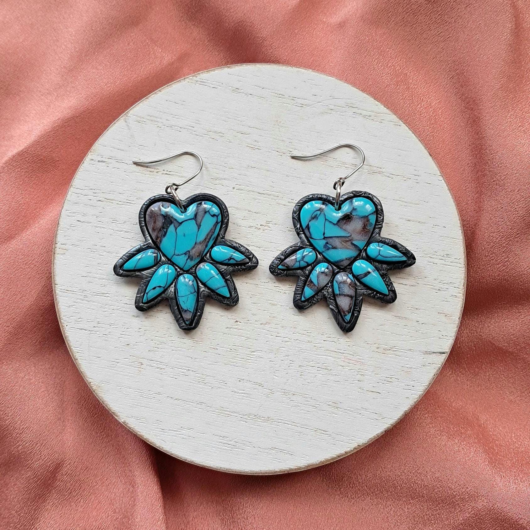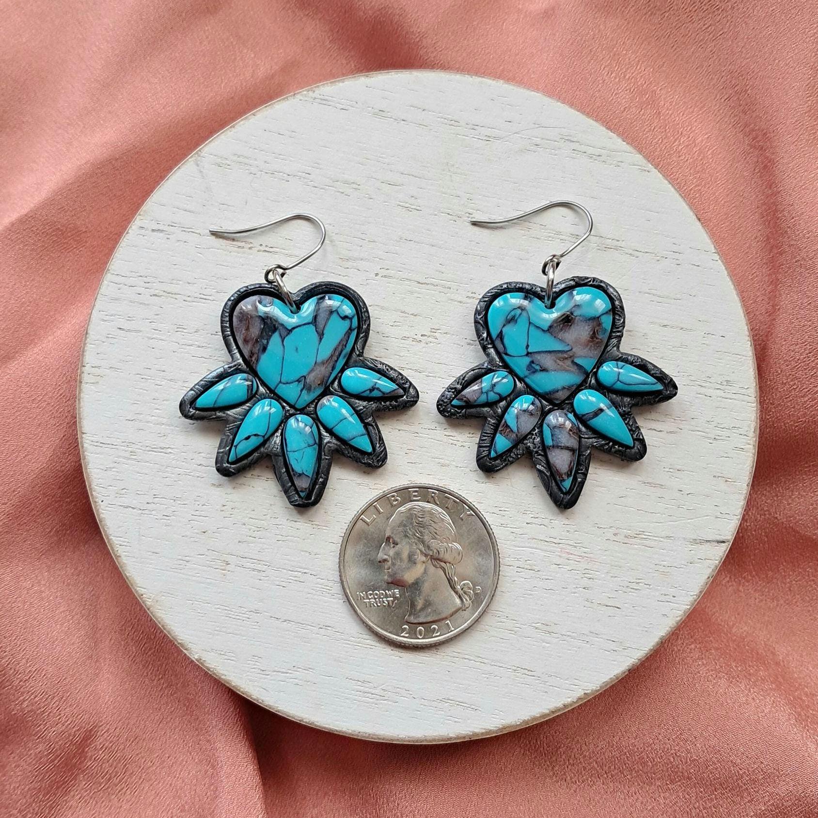 These are FAUX Turquoise Earrings made from polymer clay and resin. Not real stones. Polymer Clay is much lighter than real gemstones and metal.