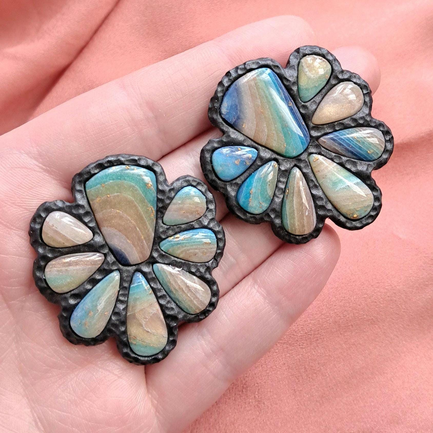 These are FAUX Agate Earrings made from polymer clay and resin. Not real stones. Polymer Clay is much lighter than real gemstones and metal.