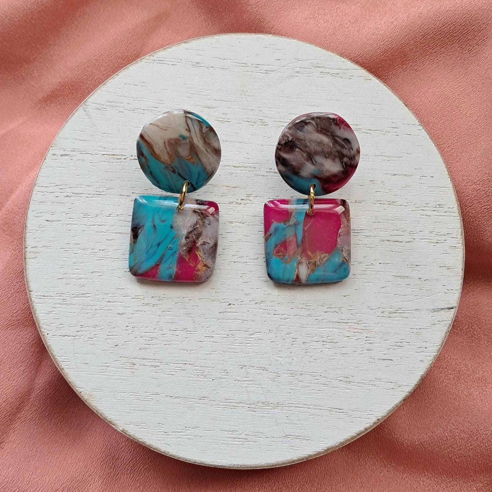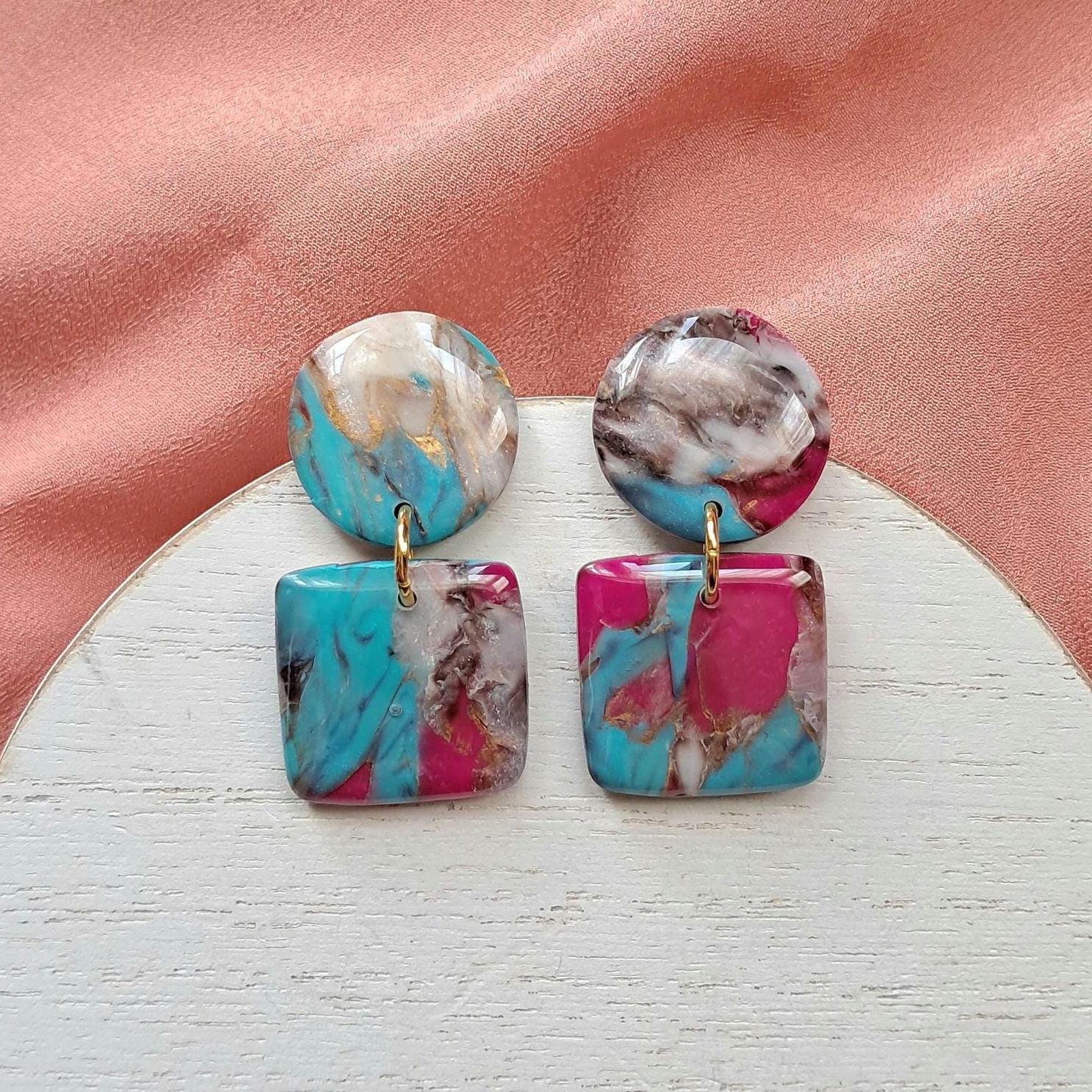 Cotton Candy Turquoise: Square Dangle