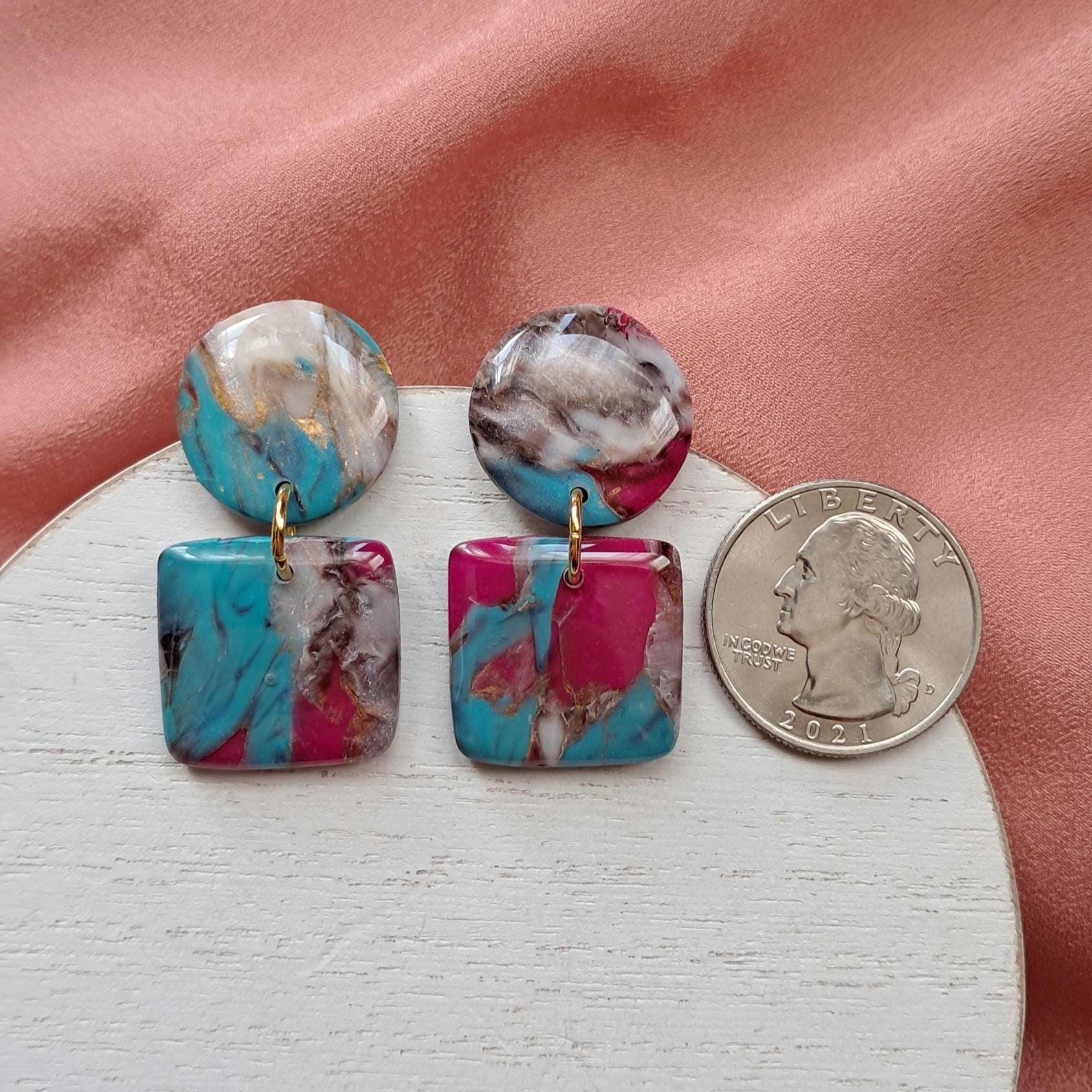 These are FAUX Turquoise Earrings made from polymer clay and resin. Not real stones. Polymer Clay is much lighter than real gemstones and metal.