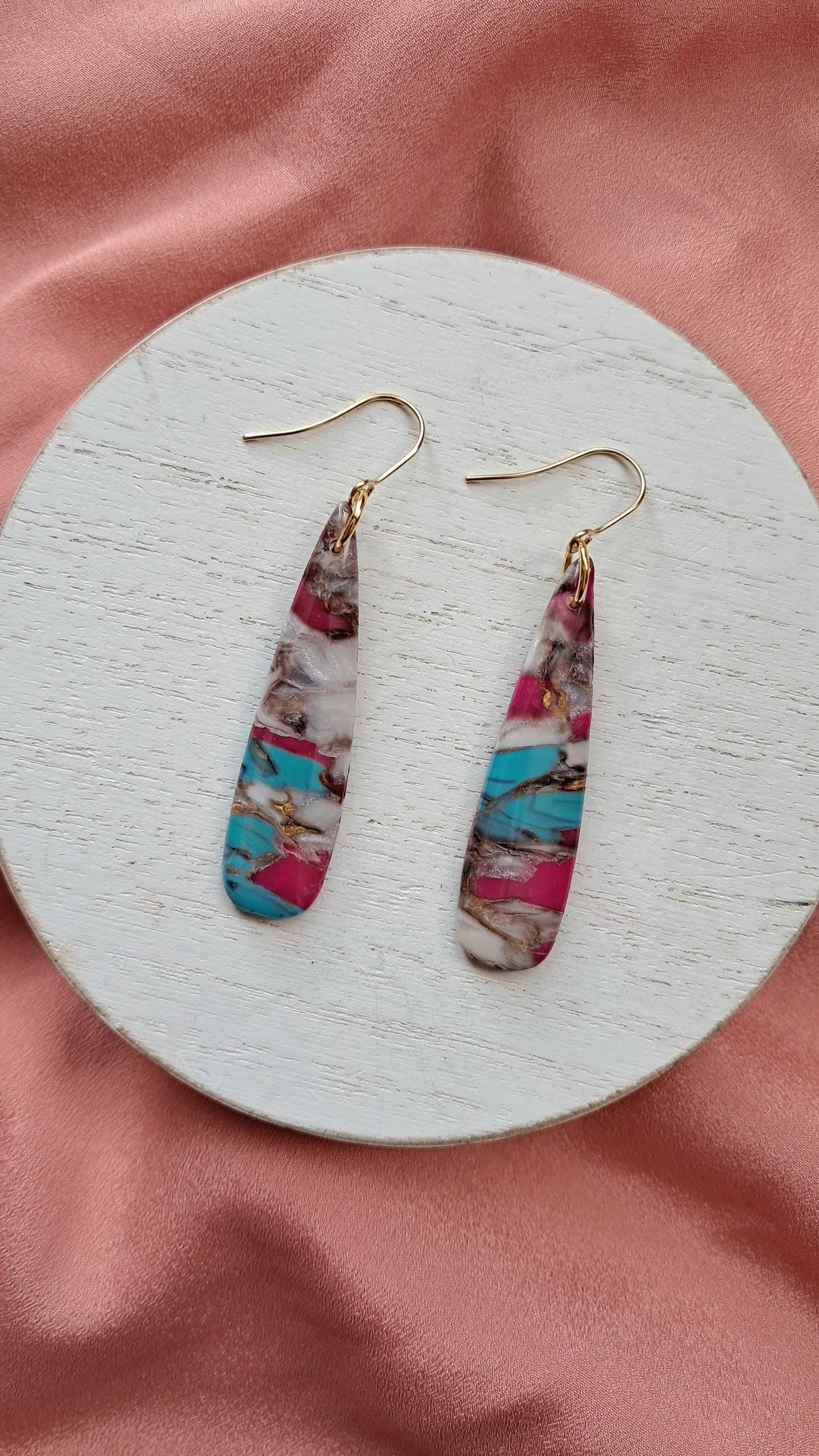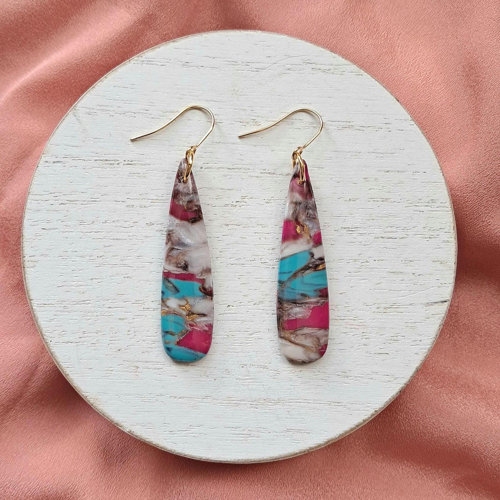 These are FAUX Turquoise Earrings made from polymer clay and resin. Not real stones. Polymer Clay is much lighter than real gemstones and metal.