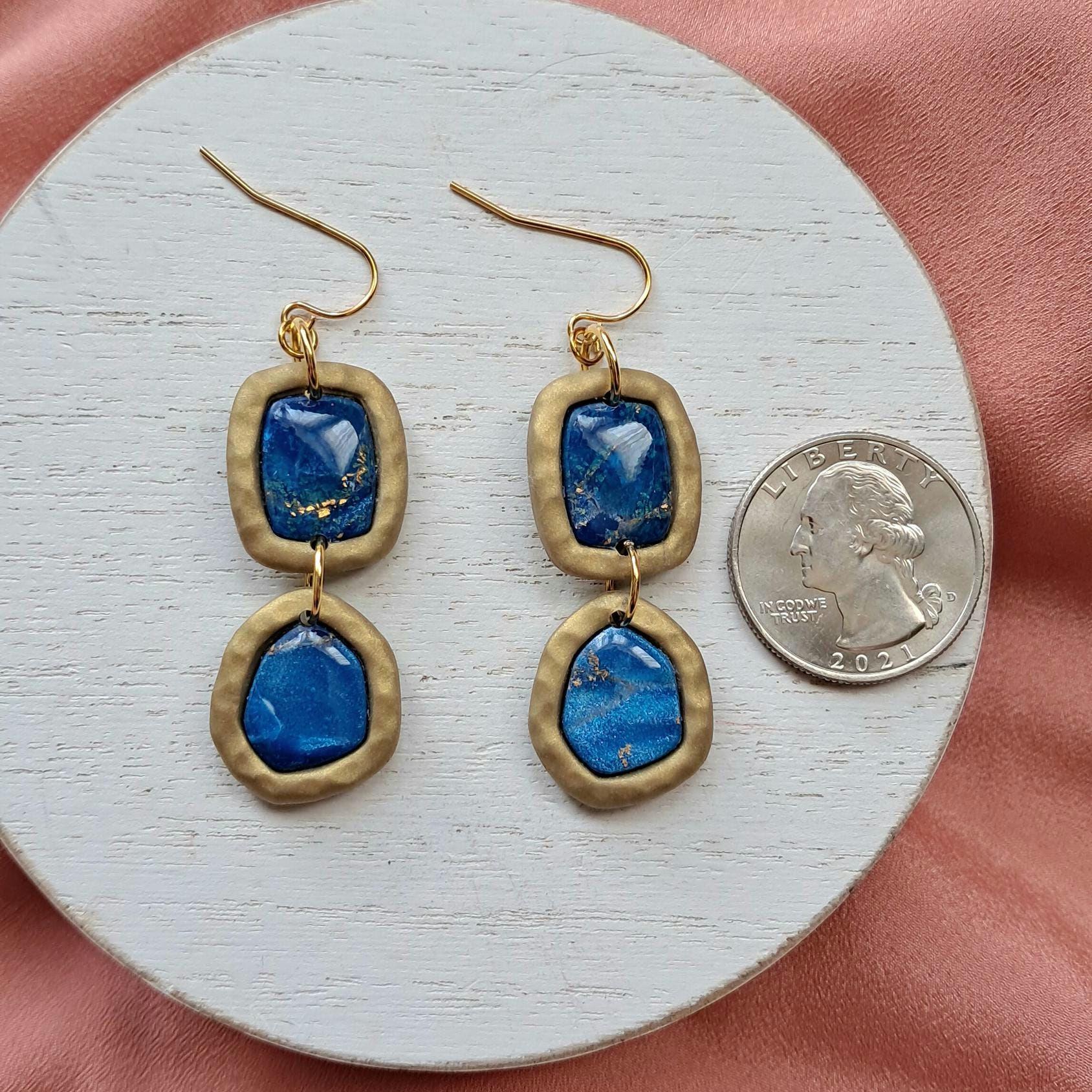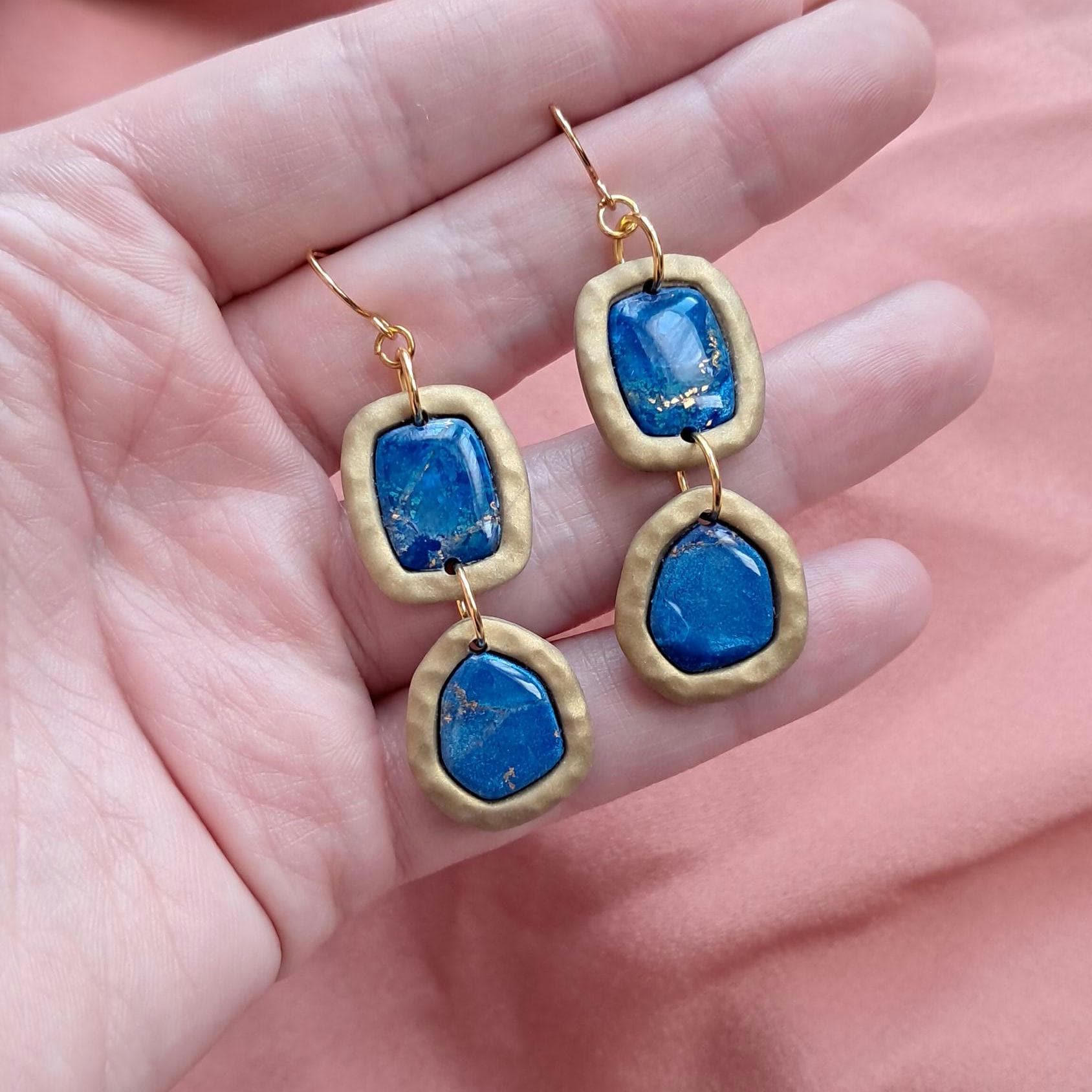 These are FAUX gemstone earrings made from polymer clay and resin. Not real stones. Polymer Clay is much lighter than real gemstones and metal.